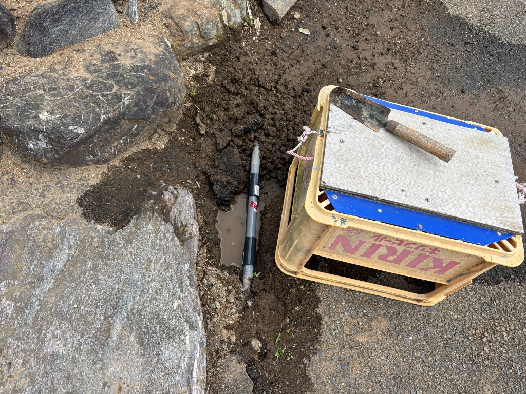 ともあれ、土をギュッギュッと固めながら埋め戻し。