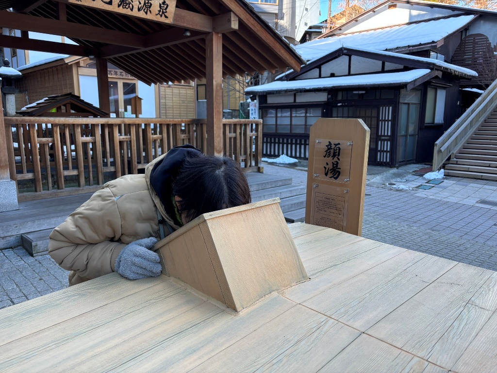 テレビで見たらしい、念願(!?)の「顔湯」も体験してました(^-^;